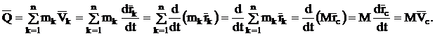 Количество движения механической системы определяется как геометрическая сумма количеств движения материальных точек, составляющих систему: