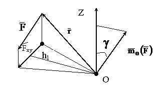 Эта мера движения вводится по аналогии с моментом силы относительно центра и оси. Моментом силы относительно центра О является векторное произведение: