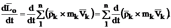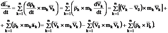 Производная по времени от кинетического момента относительно центра О равна сумме главного момента внешних сил относительно того же центра и векторного произведения количества движения механической системы на скорость центра моментов.