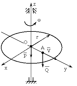 Горизонтальной платформе радиуса r весом Р, имеющей вертикальную ось, проходящую через центр платформы О, сообщается начальная угловая скорость w0. Человек А весом Q, находившийся в начальный момент в центре платформы, идет вдоль радиуса ОВ. Найти угловую скорость вращения платформы w при ОА=r, принимая платформу за однородный диск.