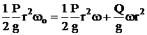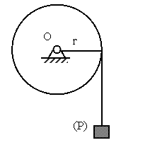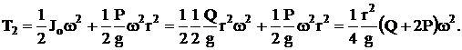 На шкив радиуса r весом Q, вращающийся вокруг горизонтальной оси О, навернута веревка, к концу которой привязана гиря весом Р; в начале система находится в покое. Найти угловую скорость шкива в тот момент, когда груз опустится на расстояние h.