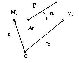 Работу постоянной силы на конечном прямолинейном перемещении из точки М1 в точку М2 можно представить следующим образом: