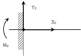 5. Связь, называемая жесткой заделкой (рис. 5) имеет три составляющих опорной реакции.