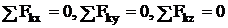 Уравнения равновесия, для произвольно расположенной в пространстве системы сил, получаются из условий, что главный вектор и главный момент равны нулю, т. е.