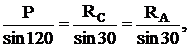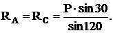 Таким образом, задача определения опорных реакций сводится к задаче решения полученного силового треугольника. Для решения воспользуемся теоремой синусов и составляем следующее соотношение: