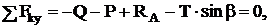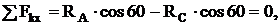 Составим уравнения равновесия для участка АС