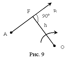 Другим важным понятием является момент силы относительно данной точки (рис. 9). Момент силы относительно данной точки равен произведению модуля силы на плечо, т. е. длину перпендикуляра, опущенного из этой точки на линию действия силы. Следовательно, будем иметь