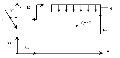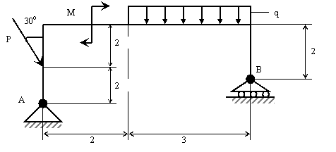 рис. 11, если Р=2 кН, q = 3 кН/м, m = 5 кНм. Размеры приведены на рис.11.