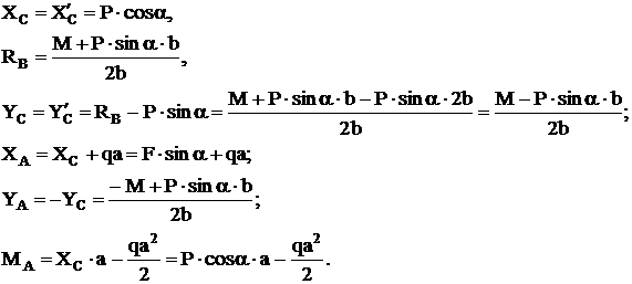 Момент следует брать относительно той точки, в которой сходятся большее количество неизвестных опорных реакций. Из полученных уравнений определяем неизвестные опорные реакции в следующем порядке: