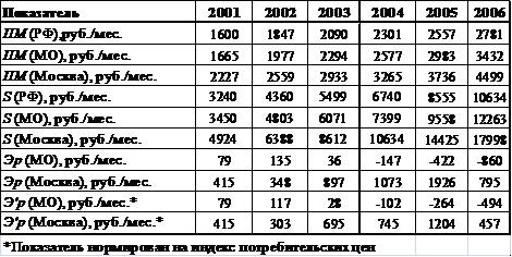 Из приведенных расчетов по Москве и области за гг. видно (Таблица 4), что региональный эффект для Подмосковья убывает, став отрицательным в 2004 году. Это говорит о том, что в плане доходов населения Подмосковье проигрывает по отношению к другим регионам России. В противовес этому для Москвы наблюдается стабильная положительная динамика.