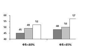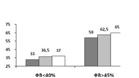 Тем не менее, несмотря на то, что в обеих группах больных был получен положительный эффект ТБКА со стентированием на показатели систолической и диастолической функции, ФВ и УО левого и правого желудочков сердца, у 3 (11%) больных со сниженной и у 2 (4,5%) больных с сохраненной ФВ ЛЖ при ангиографически успешной эндоваскулярной реваскуляризации миокарда, существенного улучшения сократительной функции ЛЖ и ПЖ не отмечалось.