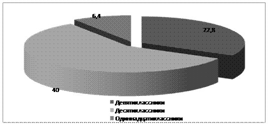 Был ли опыт работы? Дали положительный ответ 12,7% девятиклассников, 31,4% десятиклассников и 51,6% одиннадцатиклассников.![]() |