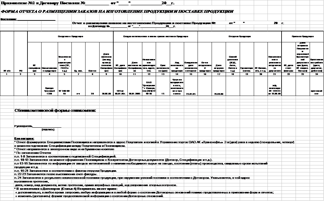 - Приложение Форма Отчета о размещении заказов на изготовление и поставку Продукции;