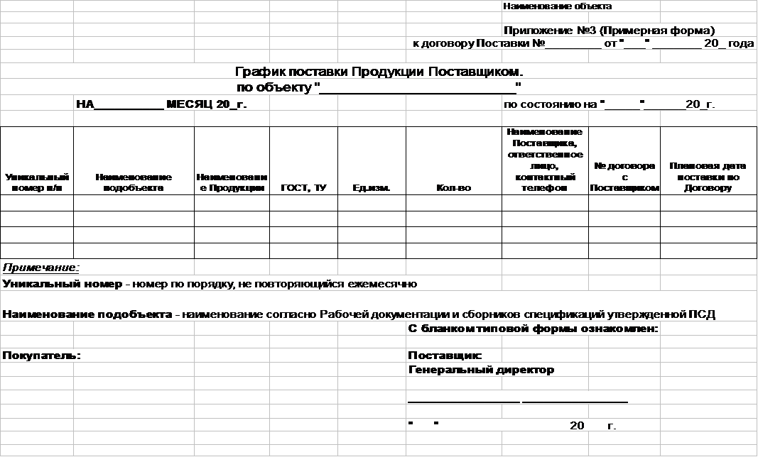 2.11. Поставщик ежемесячно, в срок до 25 (Двадцать пятого) числа текущего месяца разрабатывает и направляет на согласование с Покупателем Графики поставки Продукции, указанной в согласованных Сторонами Спецификациях и Дополнениях к спецификациям, по форме Приложения 3 на следующий месяц.