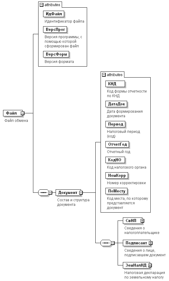 Налоговая декларация по земельному налогу | ЗемНалНД | С | О | Состав элемента представлен в табл. 4.9 |