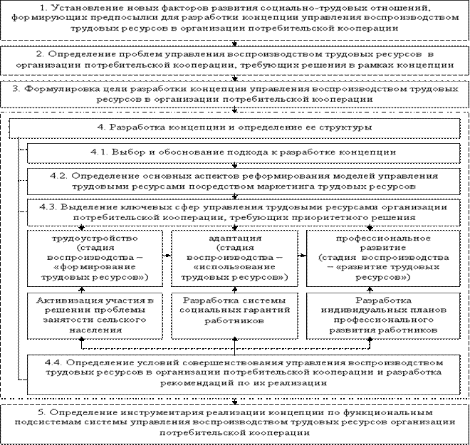 Рис. 5. Последовательность разработки и структурное построение концепции управления воспроизводством трудовых ресурсов в организации потребительской кооперации