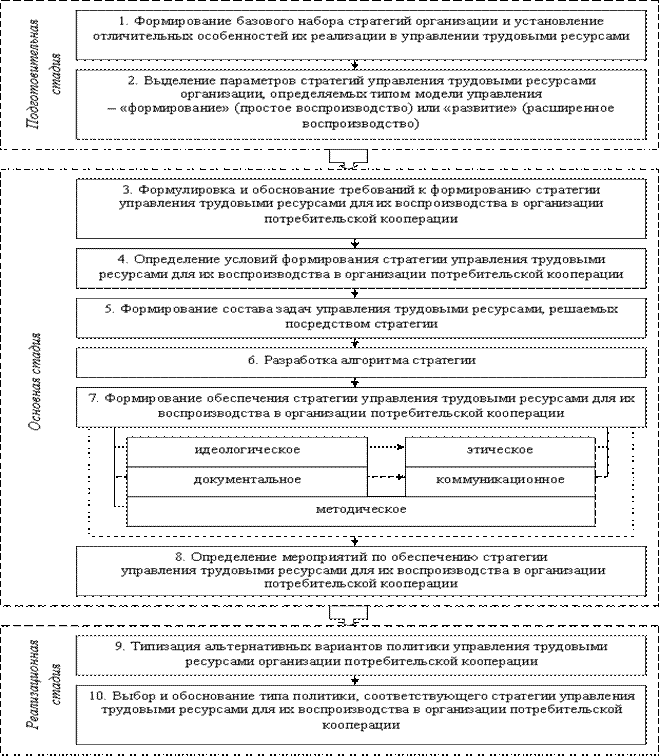 Формирование стратегии управления трудовыми ресурсами для их воспроизводства в организации потребительской кооперации определялось как «сквозная» задача, интегрирующая концептуальную, технологическую и инструментальную компоненты управления.