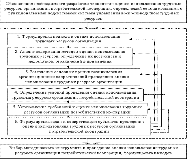 Рис. 7. Последовательность разработки технологии оценки использования трудовых ресурсов организации потребительской кооперации