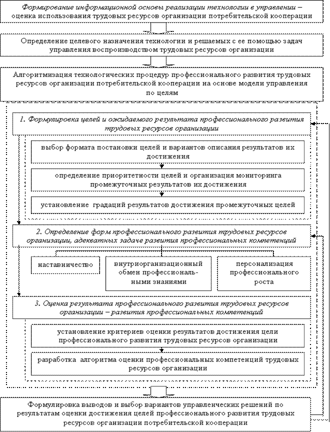 Изложенные обстоятельства предопределили необходимость разработки технологии профессионального развития трудовых ресурсов организации потребительской кооперации (рис. 8).