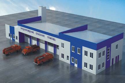 Проектом предусмотрено строительство комплекса сооружений “Пожарного Депо” в