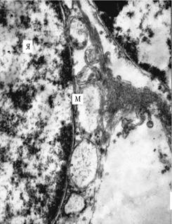 хондрий. Я — ядро, М — митохондрия. Ув. 10 000