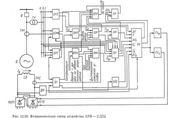 § 12.10. УСТРОЙСТВО АРВ СИЛЬНОГО ДЕЙСТВИЯ АРВ — СДП1 СИНХРОННЫХ ГЕНЕРАТОРОВ С ТИРИСТОРНОЙ СИСТЕМОЙ ВОЗБУЖДЕНИЯ