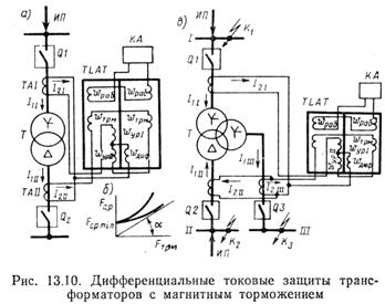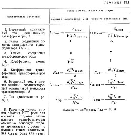 § 13.5. СХЕМЫ, ВЫБОР ПАРАМЕТРОВ И ОБЛАСТЬ ИСПОЛЬЗОВАНИЯ ДИФФЕРЕНЦИАЛЬНЫХ ЗАЩИТ ТРАНСФОРМАТОРОВ