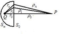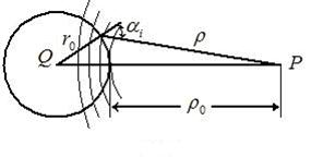 , перпендикулярной линии, соединяющей источник излучения с точкой наблюдения P, и полусферы