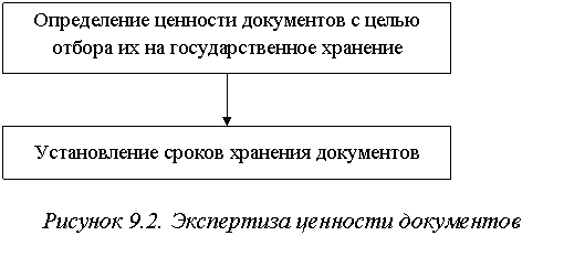 Экспертиза ценности документов – отбор документов на государственное хранение или установление сроков их хранения на основе принятых критериев (Рисунок 9.2).