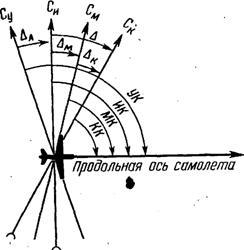 Компасный курс КК - это угол, »заключенный между северным направлением компасного меридиана и продольной осью самолета; отсчитывается по часовой стрелке от 0 до 360°.