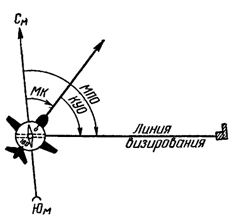 разворотом самолета совместить линию визирования с выбранным ориентиром. После установки самолета на заданный курс необходимо индекс «МК» курсоотметчика подвести под значение заданного магнитного курса и закрепить его в этом положении.