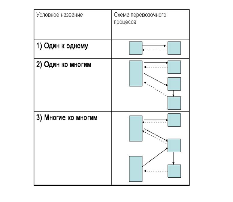 С точки зрения организации перевозочного процесса возможны три схемы с которыми сталкиваются АТП:
