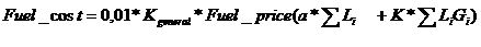 В результате обработки статистических данных (по данным [2]), была получена эмпирическая формула для расчета расходов на топливо: