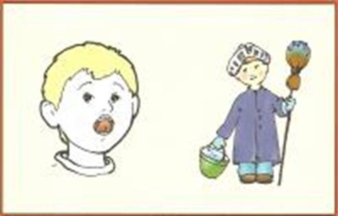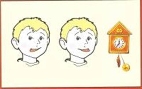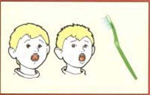 Рот открыт. Губы в улыбке. Кончиком узкого языка попеременно тянуться под счет педагога к уголкам рта.