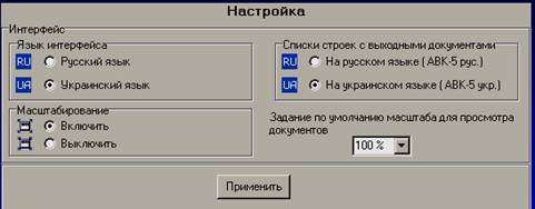 По умолчанию будет предложен украинский язык интерфейса и формирование выходных документов (документов, подготовленных для последующей печати) на украинском языке.
