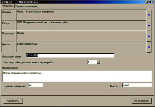 Кроме того, во избежание неправильного расчета транспортной составляющей сметной цены, необходимо уточнять вес (брутто) материала на принимаемую единицу измерения, а в следующей закладке "Параметры позиции" по идентификатору определять способ доставки материала на объект.