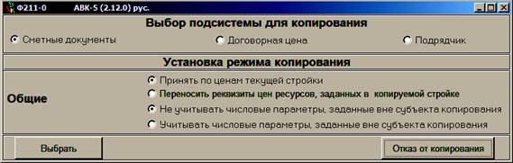В открывшемся окне Пользователь может выбрать из какой подсистемы будет осуществляться копирование, а так же назначить режим копирования.
