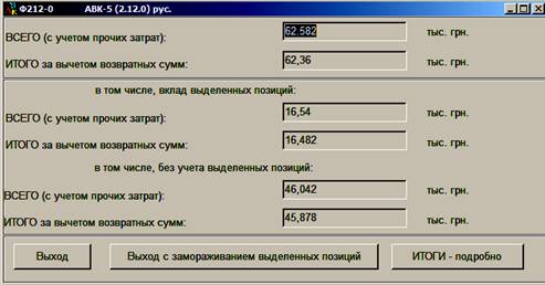 Пользователю предоставлена так же возможность получить информацию о полной сметной стоимости выделенных позиций.
