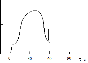 Стрелкой отмечен момент окончания процесса, когда интенсивность полосы выходит на уровень фона.