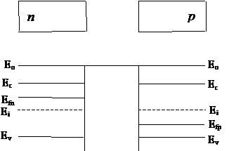 n-типа и p-типа без контакта (а), и в условиях равновесного
