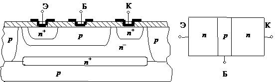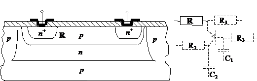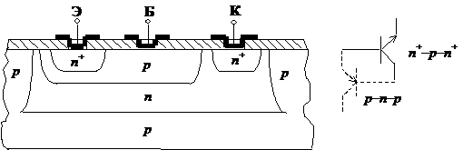 Рис. 8.12. Основной (n+–p–n+) и паразитный (p–n–p) транзисторы