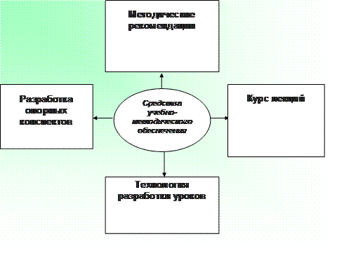 Средства учебно-методического обеспечения – методические рекомендации преподавания производственного обучения и предметов теоретического обучения, методические указания по выполнению лабораторно-практических работ, производственных практик, методические рекомендации по ведению дневников практик, разработка опорных конспектов для учащихся, курс лекций, технология разработки уроков.
