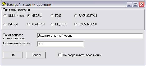 - В случае необходимости у пользователя запрашивается ввод метки времени для имеющихся в шаблоне определений: