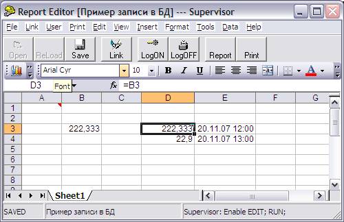 Чтение данных из БД Electro в ячейки.