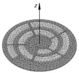 Вариант трехмерной модели дискового магнитного сепаратора с нанесенной на нее сеткой из конечных элементов показан на рис. 3. Воздушное пространство вокруг модели также заполнено сеткой (для наглядности она не показана).