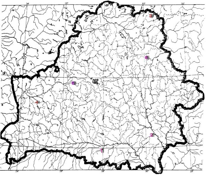 1 – Свиновод; 2 – Ведрич; 3 – Ловать; 4 – Зельвянка; 5 – Адров; 6 – Уса.