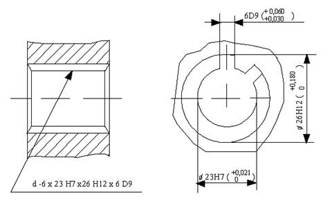 2. Дано: шлицевое соединение 6х23х26, 1 – требования к точности центрирования - высокие, термообработка шлицевой втулки – 50…59 НRCэ, вид соединения – подвижное.