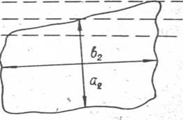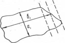 Для определения ширины и длины образца подготовленный к испытанию образец породы прикладывается отшлифованными гранями (сначала одной, а затем другой) к листу миллиметровой бумаги и контуры этих граней обводятся карандашом (рисунок 1). По полученным эскизам контуров для каждой из граней находится минимальный (ширина a) и максимальный (длина b) размеры. По двум значениям a1 - для верхней грани образца и а2 нижней грани находится средняя ширина образца: