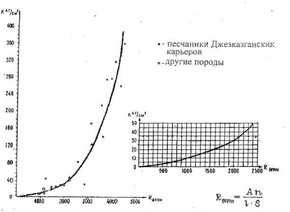 Величина сцепления пород определяется по графику зависимости между относительной механической прочностью (R отн) и сцеплением (к) пород выражающейся кривой, имеющей параболический характер (рисунок 3).