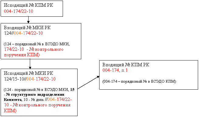 Индекс документа состоит из порядкового номера в регистрационно-контрольной форме (в базе Единой системы электронного документооборота (далее – ЕСЭДО)) и номера контрольного документа.